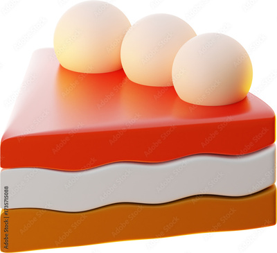 Stylized Thanksgiving Dessert Illustration with Three Spheres on Red Layer with White and Brown Layers on Transparent Background