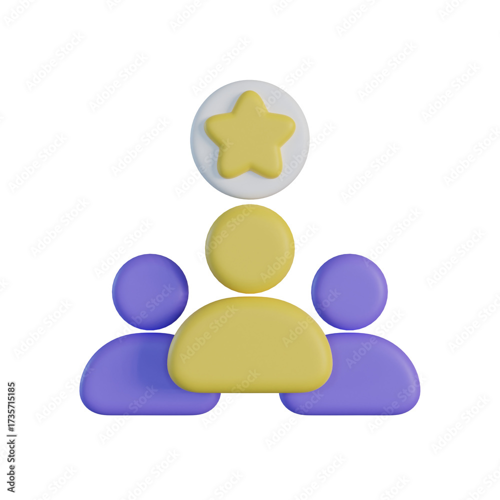 Stylized Team Leader Concept with Central Yellow Figure and Star Above on Transparent Background