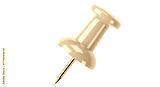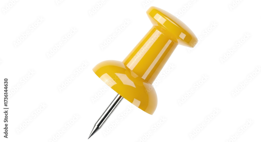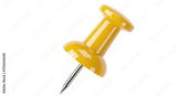 Isolated yellow push pin or thumbtack for office supplies, bulletin board, or notice board