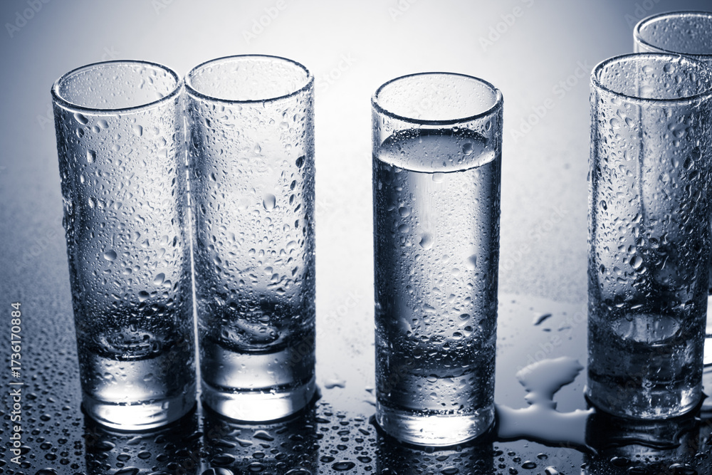 row of glasses for vodka