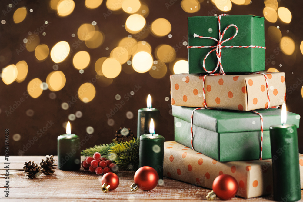 Christmas gift boxes with decoration on the table