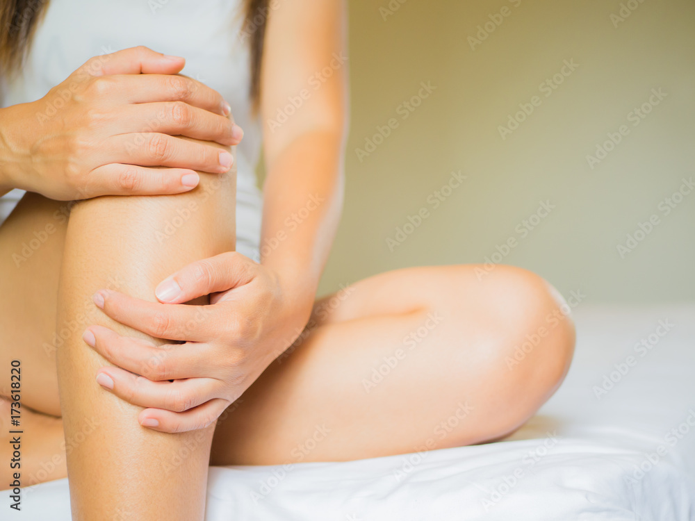Closeup female's leg. Leg pain and injury. Health care and medical concept.