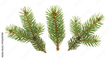 Isolated spruce branches on display, green needles with brown stems, pine family twigs