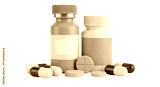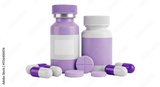 Isolated medication bottles, pills and capsules for health and medical concept close-up render