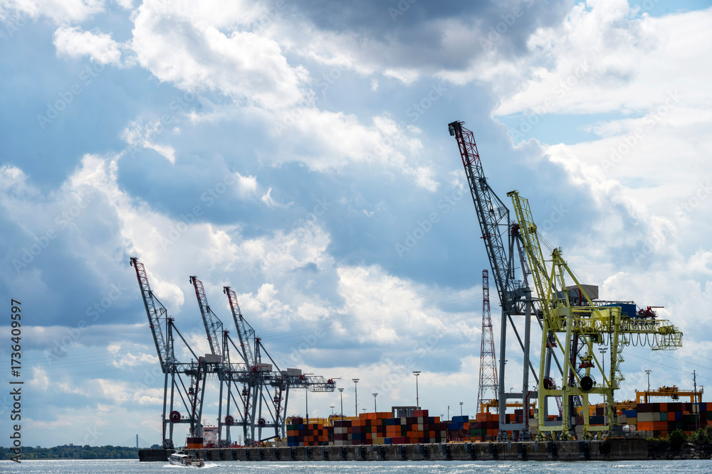Port cranes, essential for handling containers and goods in the Port of Montreal