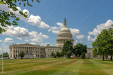 Washington DC Capitol dome. Congress and Senate Capitol building. USA flag over Capitol dome. Election day in Washington. American Capitol. Congress and Senate in America.