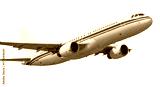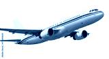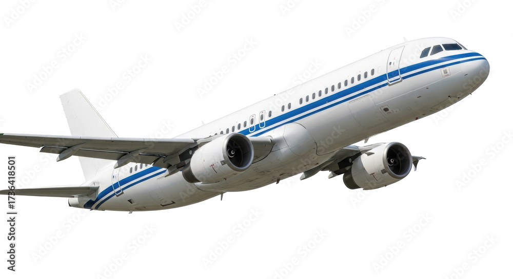 Isolated airliner in flight, banking in sky, passenger jet transport for tourism or business