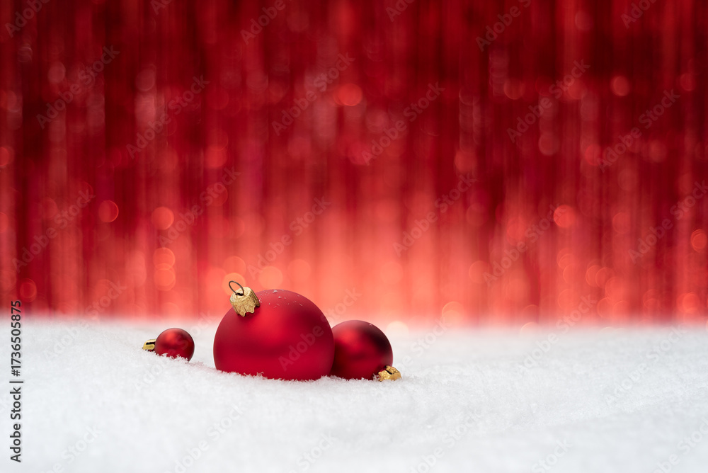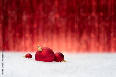 Christmas Background With Red Baubles On Snow And Festive Copy Space