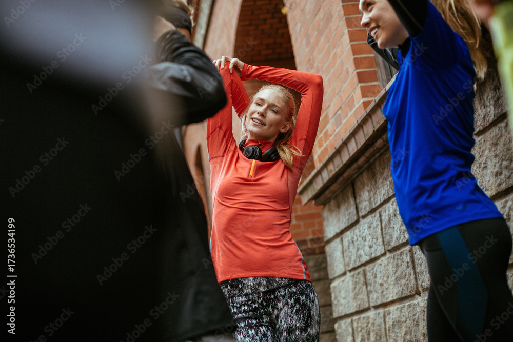 Group of people stretching outdoors
