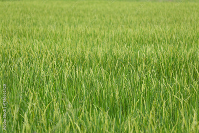 Green rice fields are in bloom.