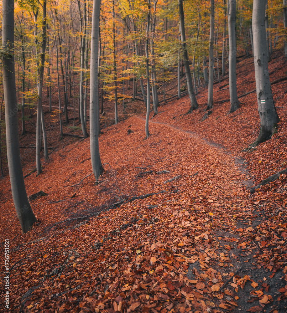 Autumn Forest Path Covered with Colorful Fall Foliage
