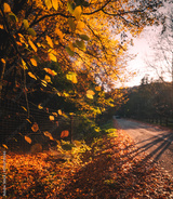 Autumn Forest Path Covered with Colorful Fall Foliage
