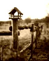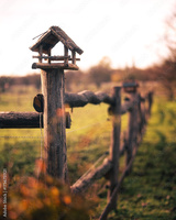 Rustic Birdhouse on Wooden Fence at Golden Hour