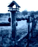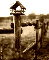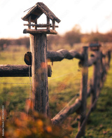 Rustic Birdhouse on Wooden Fence at Golden Hour