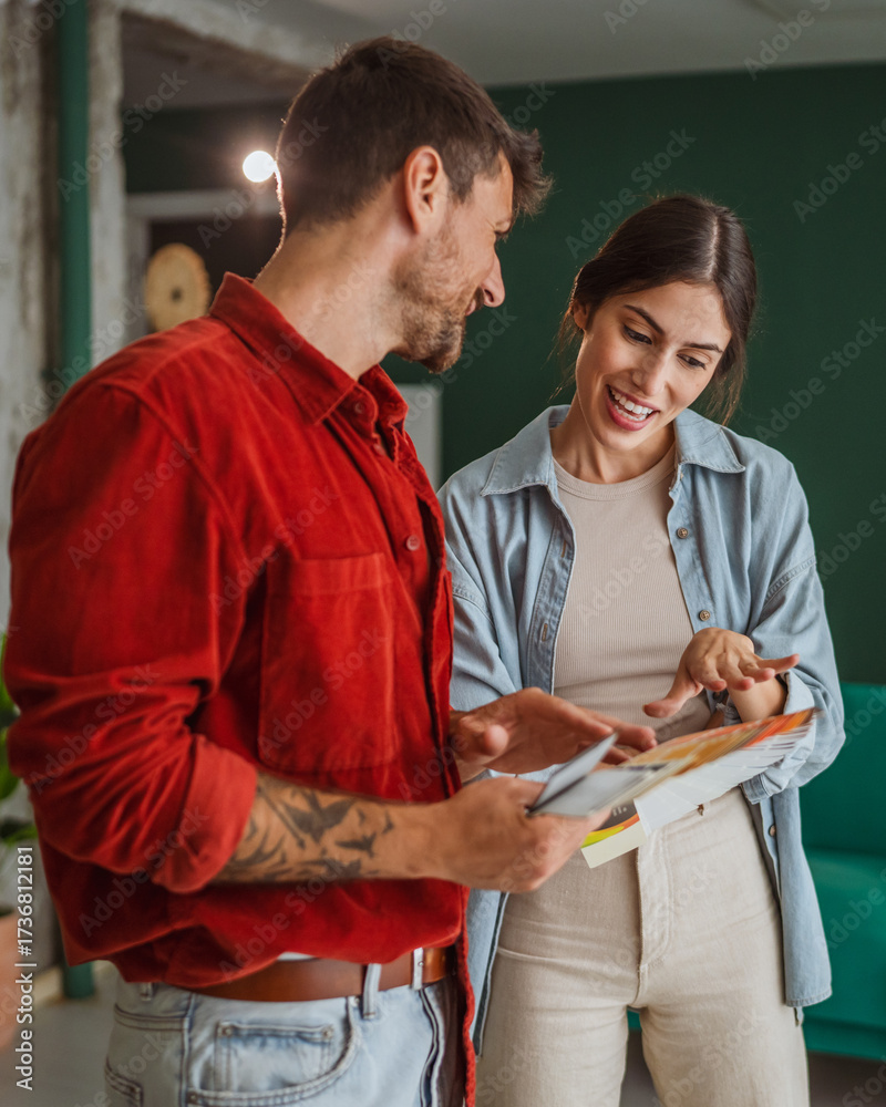Couple choosing interior design for their new home
