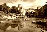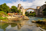 View of the historic medieval bridge in Mostar, Bosnia and Herzegovina