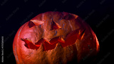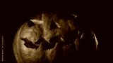 Pumpkins and other decorative items for Halloween and Day of the Dead festivities with red and orange LED lights