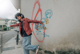 Young Latino Hispanic man enjoying his headphones on the street