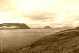 view to Hestur and Koltur Island from Kirkjubour at Streymoy Island, Faroe Islands, Denmark