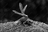 A crocodile newt (Tylototriton Verrucosus) looks confused as a dragonfly (Libellulidae) suddenly lands on its body.