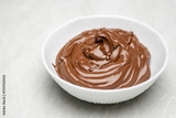 Delicious Chocolate Cream in White Bowl on Table – Sweet Dessert Close Up