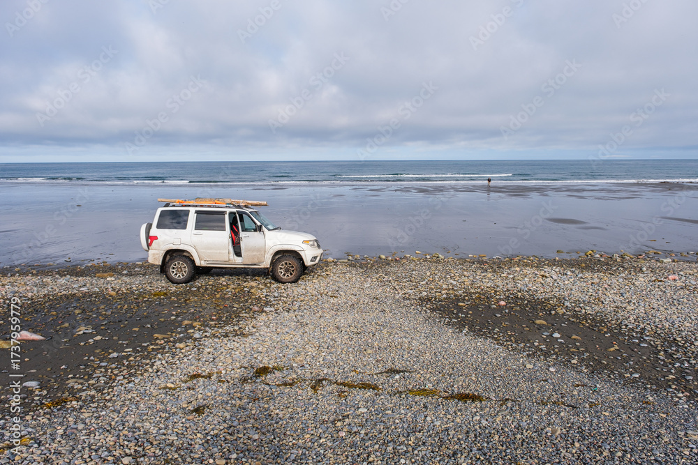 Russia, Murmansk region, Rybachy Peninsula. Sandy beach. August 2025