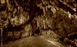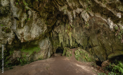 Limestone stalactites inside de cave Cueva de Las Raíces, in Asturias, Northern Spain