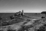 The islet Los Picones in El Castiellu beach with its characteristic pebble isthmus visible at low tide in Pendueles, western coast of Asturias, spain