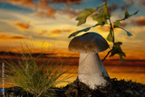Prawdziwek na tle zachodu słońca