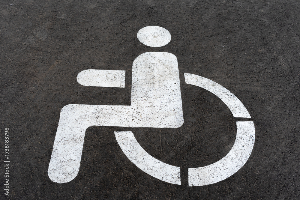 Disabled parking sign on asphalt background representing accessibility and inclusivity