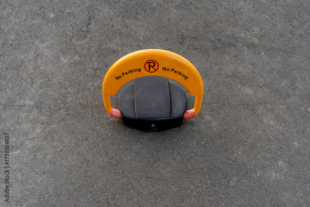Yellow no parking wheel stop on asphalt background