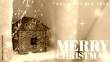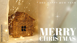 Happy New Year greeting with a festive display featuring a cozy straw house