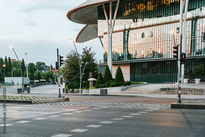 Modern architecture and urban landscape during twilight in a bustling city setting