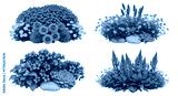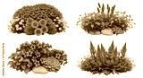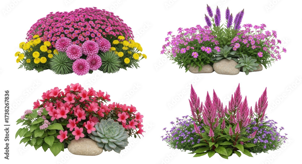 Isolated four flower arrangements, beautiful blossom, floral still life, summer garden flowers
