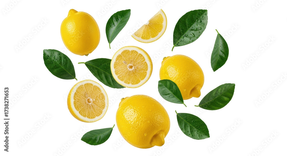 Isolated Yellow Lemons with Green Leaves for Freshness in Design Compositions, Healthy Fruits