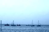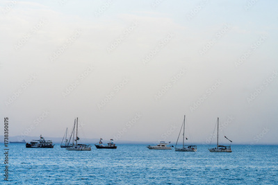 The Sumud Flotilla anchored off the coast of Sidi Bou Said, Tunisia, during its voyage as part of an international solidarity initiative to support Gaza