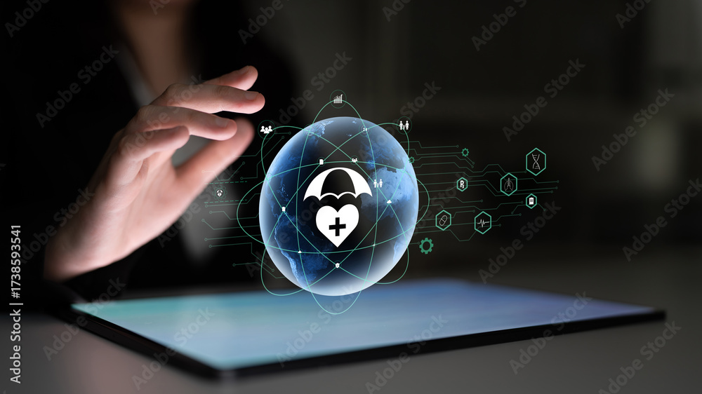 Global healthcare and medical insurance solutions for family protection. Digital technology provides access to health services and insurance worldwide. Motif