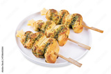 Basil mozzarella garlic Puff pastry pies in the form of Christmas tree for Christmas holidays on a white isolated background