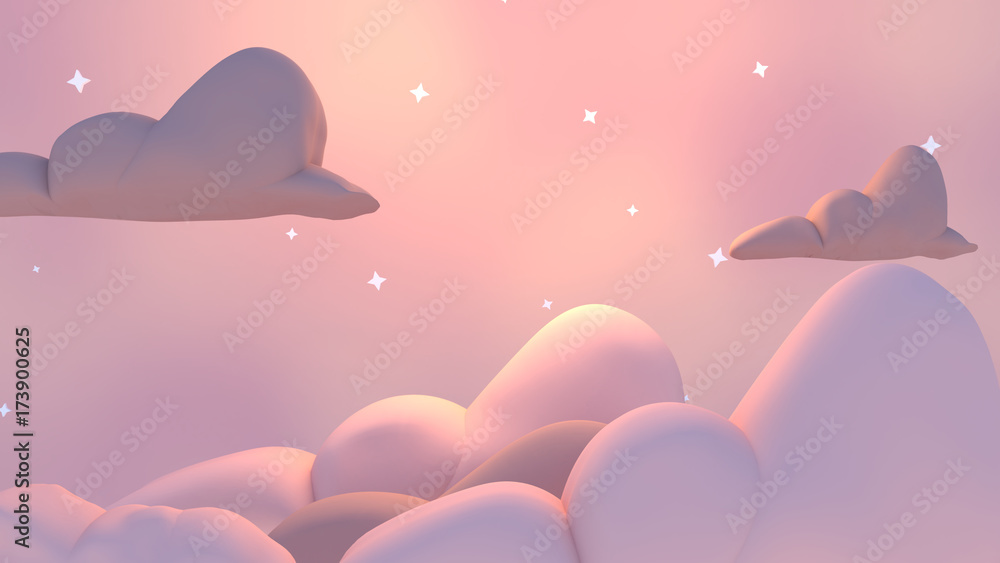 Beautiful cartoon pastel night sky. 3d rendering picture.