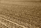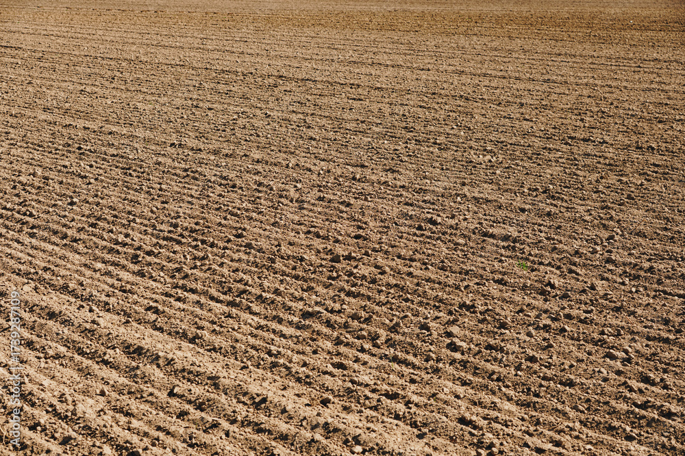 Landscape with an empty plowed field at the end of summer