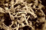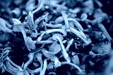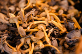 Fresh grey chanterelle mushrooms stacked together with yellow stems, symbolizing wild forest harvest, organic food, seasonal cooking ingredient and natural healthy nutrition visuals.