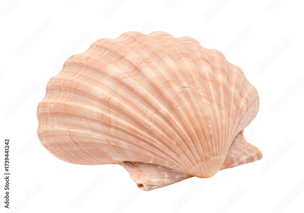 Isolated textured seashell with ribs, close-up detail, a beautiful clam with a natural design