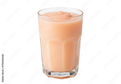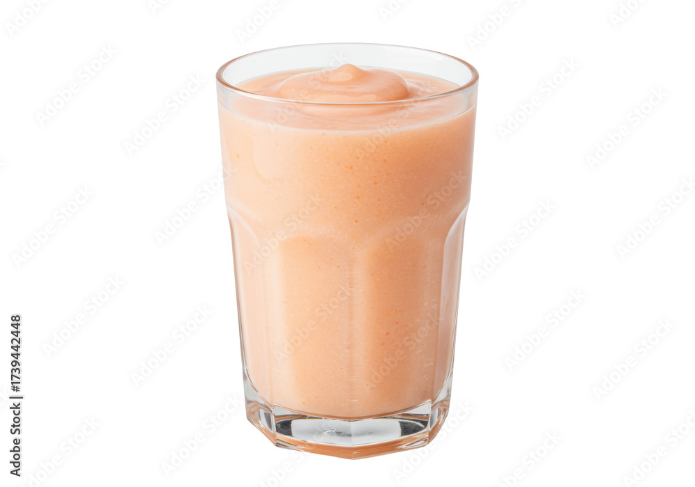 Isolated fresh fruit smoothie in glass, peach juice drink for healthy lifestyle diet