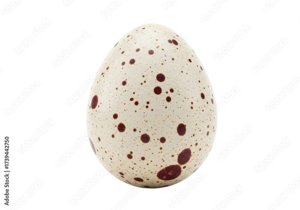 Isolated speckled bird egg, a small egg with spots, delicate shell, simple shape and pattern