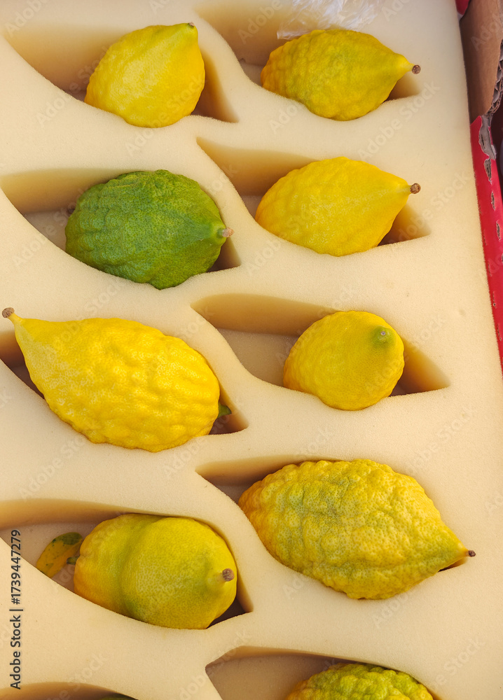 Etrog - is the yellow citron or Citrus medica, for sale at special street market