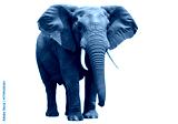 Isolated elephant, large mammal with tusks and trunk, standing tall against a clean background