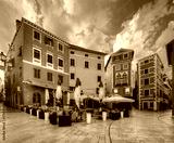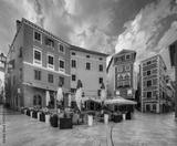 Street scene in old mediterranean town of Rovinj, Croatia.