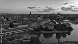Evening Panorama of Wrocław – Aerial View with Illuminated Street Lamps