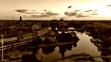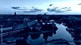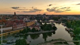 Evening Panorama of Wrocław – Aerial View with Illuminated Street Lamps