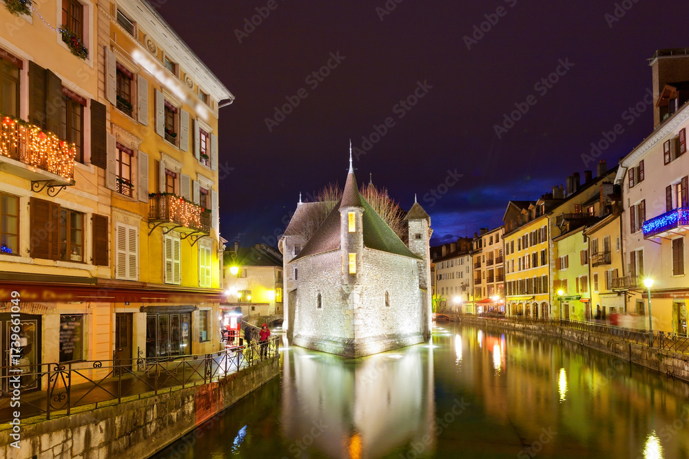 Panoramic view of Old Town of Annecy in winter, Haute Savoie, Rhone Alps